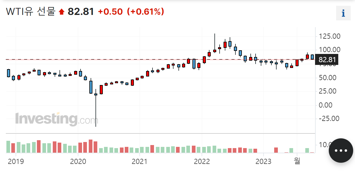 WTI유 1. 미국 CPI(소비자물가지수)가 예상치보다 높게 발표,노동시장이 여전히 강세 높은 긴축기조(고금리)를 오랫동안 유지할 가능성 커짐 이로써 경기침체가 우려됨(원자재 수요 하락) 2. 이스라엘과 팔레인스타인 전쟁 미국이 이란 원유 자금을 다시 동결 결정(약 81조원) 이스라엘이 시리아 남부 지역 미사일 공격 팔레스타인 주민에게 24시간 내에 대피 경고 , 지상군 투입 임박 이스라엘 의회 전시내각 승인 3. 미국 원유 재고는 예상치(49만배럴)보다 큰 1,020만배럴로 발표 4. 중국의 경기침체 우려와 장기적 관점의 화석연료의 수요감소 정리 하마스 공격의 배후로 지목되는 이란과 이스라엘의 확전으로 번지지 않는다면 원유 수요 저조로 하락 가능성이 높음